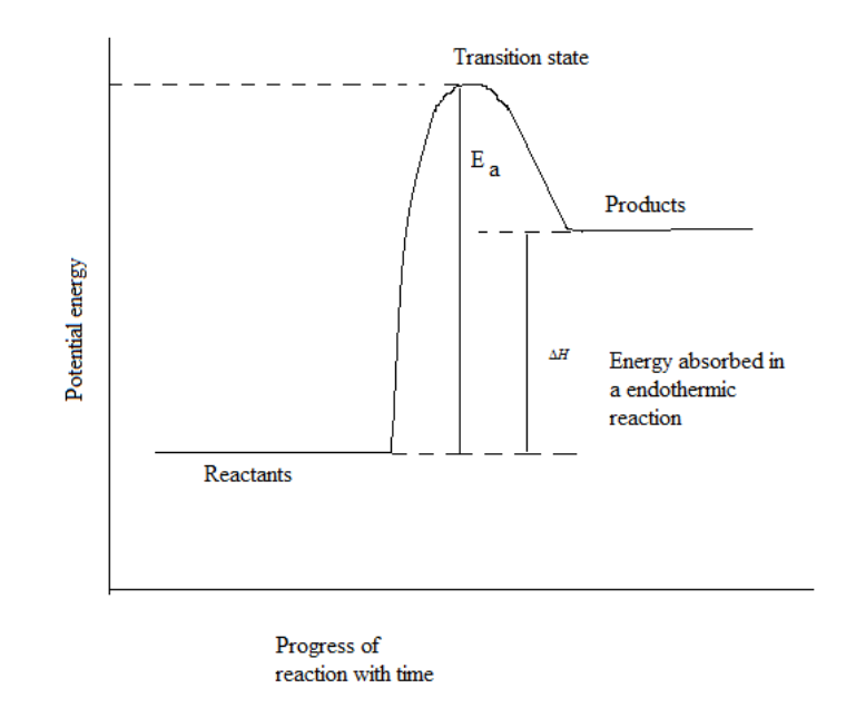In endothermic reactions, the energy content of reactants is lower compared to energy of products as shown in the above energy diagram. Also we can say that stability of product is less than reactant. As the reaction proceeds in forward direction towards unstable entities, enthalpy for the reaction is positive in case of endothermic reaction.