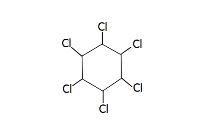 ${C_6}{H_6}C{l_6}$ is an organic compound which has six Chlorine atoms attached to a six-Carbon ring, in which each Carbon atom is bonded to a Hydrogen atom. It has several different names such as Lindane, Gammallin, Gamaxene et cetera. One of the preparation methods of this compound is by photochlorination, where Benzene is chlorinated in the presence of sunlight. The structure of Benzene Hexachloride is as follows:
