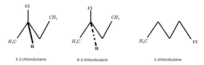 Thus, 1-chlorobutane is formed. \[C{l_2}\] atom attacks n-butane at second number carbon atom. At this position, 2 stereoisomers are formed, as chlo- rine attacks the compound from the front and back side .The 2 stereoisomers formed are S-2 chlorobutane and R-2 chlorobutane. Hence, the total number of monochloro products (including stereoisomers), which are possible is 3.