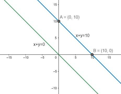 Therefore, the plot of the two lines $x+y=0$ and $x+y=10$ can be shown as below: