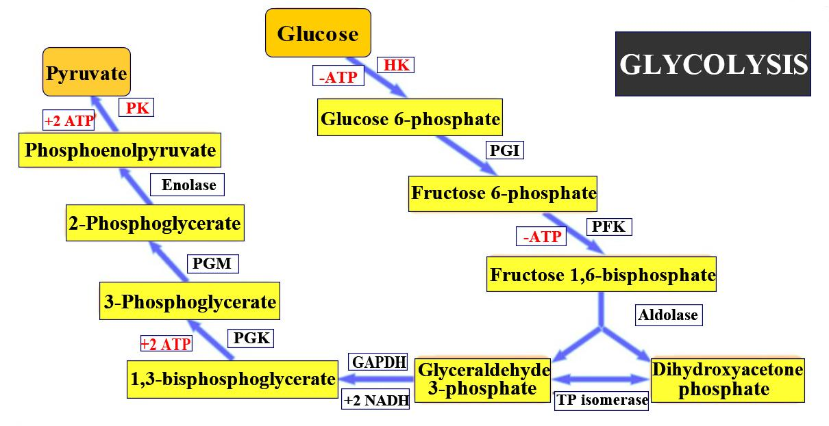 Note: In glycolysis three steps are irreversible and step number five is non-enzymatic where conversion of phosphoglyceraldehyde into 1,3-phosphoglyceraldehyde takes place. Irreversible steps take place by hexokinase, phosphofructokinase, and pyruvate kinase, these enzymes show catalytic roles and control the process of glycolysis.