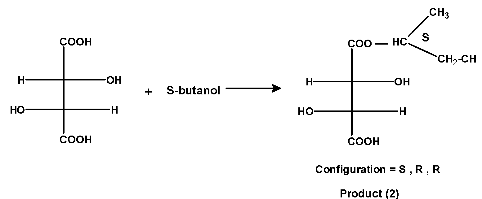 Identify product when R- and (S)-2-butanol reacts with (R, R) tartaric acid in acidic medium.
