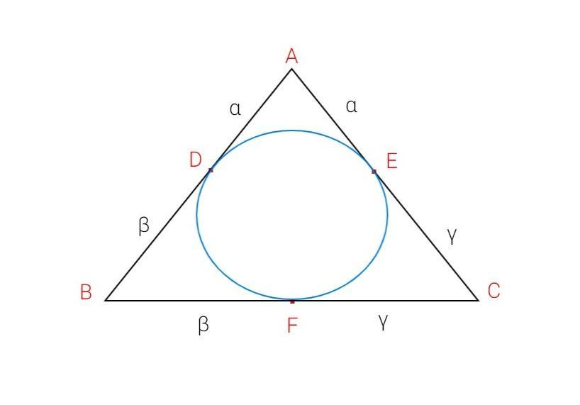 If $\alpha $,$\beta $,$\gamma $ are the distance of the vertices of a triangle of $ABC$ from the corresponding point of contact with the incircle, then