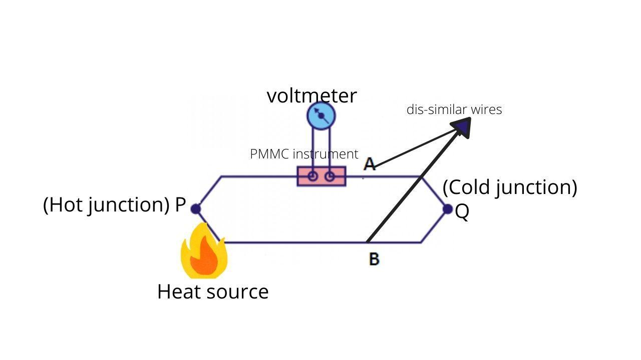 The thermocouple is based on the See back effect principle. According to the See back effect when a closed-circuit is formed by joining two dissimilar metals at two junctions are maintained at different temperatures then an electromotive force (emf) is induced in this closed circuit.