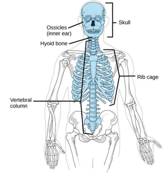 Hint: Axial skeleton comprises the bones that lies along the central axis of human body.