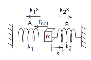 \[{F_{net}} = {k_1}x + {k_2}x \Rightarrow {F_{net}} = - \left( {{k_1} + {k_2}} \right)x\,.......(1)\]