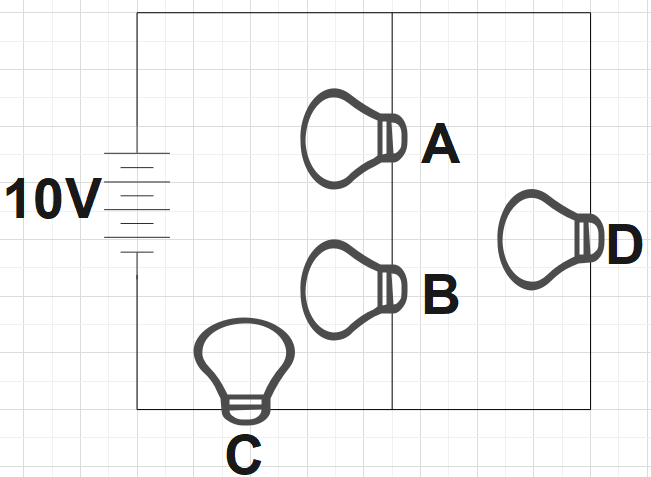 In the circuit diagram, all the bulbs are identical. Which bulb will be the brightest?