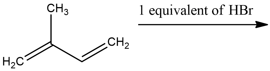- According to the reaction, 2-methyl-1, 3-butadiene is treated with one equivalent of HBr and we need to find out the major product.