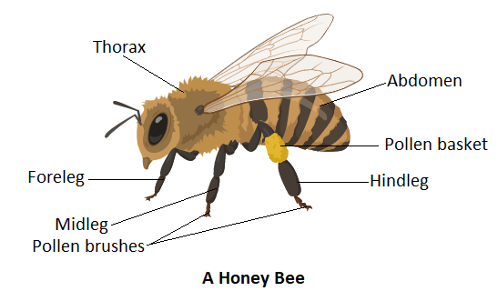 Hint: The pollen basket of the bees refers to the hairs found on the tibia of hind legs. These are structural arrangements that are used by bees to collect pollen. The bees moistened the pollen with saliva. Using their tongue the bees transfer moistened pollen to their hind legs and pack them into pollen baskets.