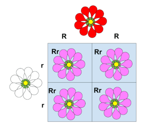 Rr: pink petals (heterozygous)