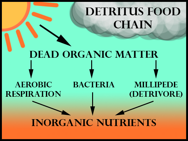 Most decomposers that are present are microscopic organisms, including protozoa and bacteria. Other decomposers are large enough to ascertain without a microscope. They include fungi alongside invertebrate organisms sometimes called detritivores, which include earthworms, termites, and millipedes.