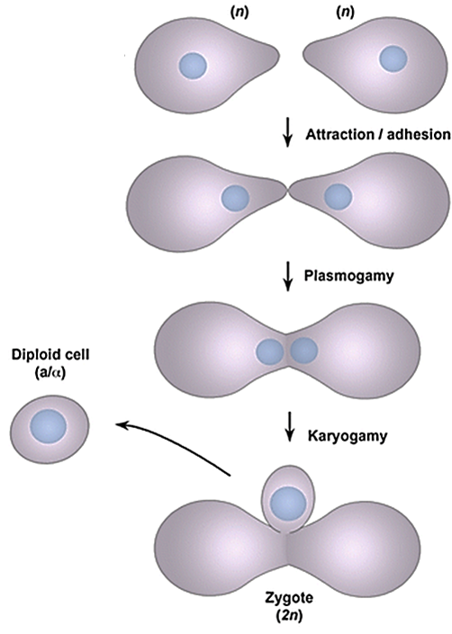 Hint: The term Karyogamy comes from the Greek word 'karyo' means ‘nut’. Karyogamy is the final step of the fusion process. For Karyogamy to occur the cell membrane and cytoplasm of each cell must fuse by the process known as plasmogamy.