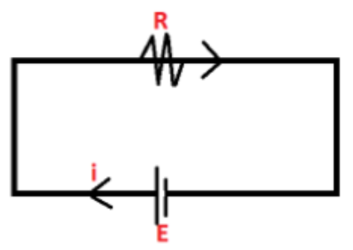 Where $i$ is the current in the circuit and is expressed in Amperes $(A)$, $R$ is the resistance in the circuit and is expressed in Ohms $(\Omega )$ and $E$ is the emf induced by the battery and is expressed in Volts $(V)$.