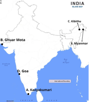B. GHUAR MOTA, IN GUJARAT'S KUTCH DISTRICT, IS THE COUNTRY'S WESTERNMOST POINT.