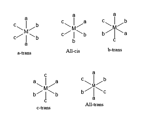 Types of geometrical isomerism that can occur in complexes with coordination number 6: