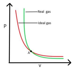 Point ‘A’ in the graph shows the intersection, where the real gas can show ideal behavior.