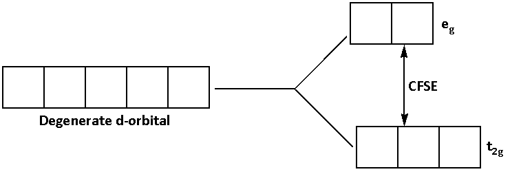 The splitting of degenerate d-orbitals is shown in the diagram below:
