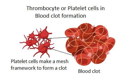 Note: The megakaryocytes are 10 to 15 times larger than normal RBCs. Also, the normal number of megakaryocytes increases in cases of certain diseases related to clotting disorders. Thrombopoietin is a growth-inducing factor that stimulates the megakaryocytes to produce platelet cells. This is essential in controlling the rate of formation of Thrombocytes.