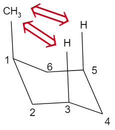 Note: A methyl group is larger than a hydrogen atom. Remember when a bulkier group in cyclohexane is present in the axial position, the larger group and the hydrogen atom present in the axial position of the ring will repel each other and these interactions are called as axial-axial interaction or gauche interaction. Whereas when the larger group is in the equatorial position, the repulsions are minimum.