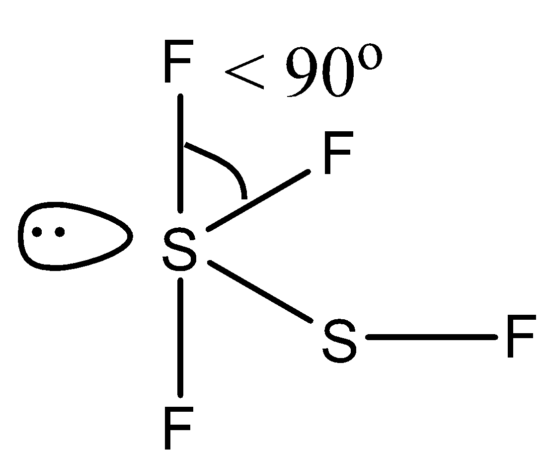 Due to the presence of lone pair the bond is reduced from right angle, i.e., $<\text{ 9}{{\text{0}}^{\circ }}$.
