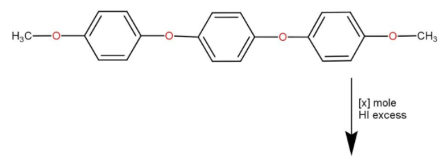 Now we will discuss what is meant by steric effect or steric hindrance, it happens when a large sized group prevents molecules from the chemical reaction happening. Since we have a large phenyl group attached to two of the oxygen atoms, it is less likely to get reacted with strong reducing agents. The last two of them will get reacted to $HI$ and the ${I^ - }$ will combine with the large phenyl part at the ${H^ + }$ will combine with $O - {\text{C}}{{\text{H}}_3}$ to form alcohol. This will happen at the both ends, hence we need two moles of $HI$