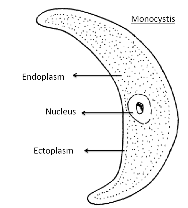Hint: Monocystis is an internal parasite in the reproductive system of earthworms. Monocystis do not have protoplasm divided into segments by septa.
