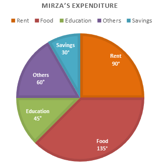Hint: In this problem, we are asked to draw a pie chart with the help of Mr. Mirza’s monthly income and also how much money he spends for food, children education, house rent, savings and other things. Our aim is to calculate the percentage for the things he spends and by using the percentage values we can draw the pie chart.