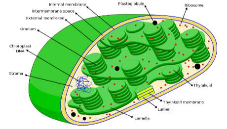 >This pigment helps in the process of photosynthesis by absorbing the sunlight. The structure of chloroplast includes two membranes and can be of various shapes such as discoid, spherical, or ribbon like.