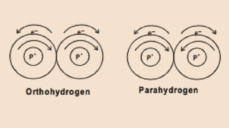 Note: Ortho and Para hydrogen are spin isomers of molecular hydrogen. Ortho hydrogen is in a high energy state as compared to Para hydrogen. Ortho hydrogen is known as triplet state and Para hydrogen is known as singlet state. The two forms of molecular hydrogen were first proposed by Werner Heisenberg and Friedrich Hund in 1927. Para hydrogen can be converted into Ortho hydrogen by using catalysts like platinum or iron, by mixing the paramagnetic molecules or by heating the sample to ${{800}^{0}}\text{C}$or more.