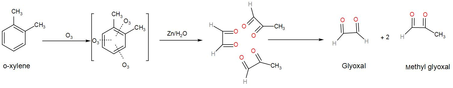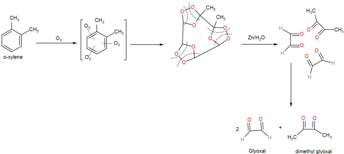 We can understand from the above discussion that o-xylene will give a mixture of glyoxal, methylglyoxal, and dimethyl glyoxal since there are two resonating structures of xylene.
