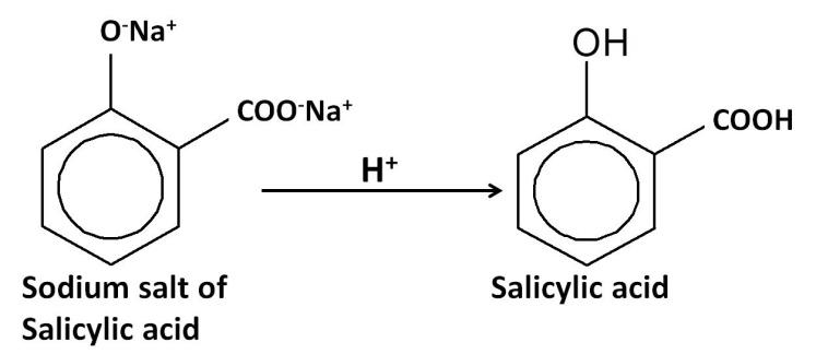 $2.$Esterification reaction: The salicylic acid is then reacted with acetic anhydride (${(C{H_3}CO)_2}O$) to form aspirin.