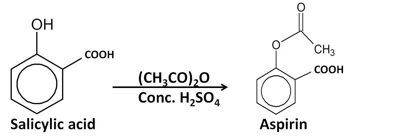 The reactions should be written and it is always better to remember the common names of some important compounds like salicylic acid, acetic anhydride and aspirin used in this reaction. These common names are generally used for commercially important compounds.