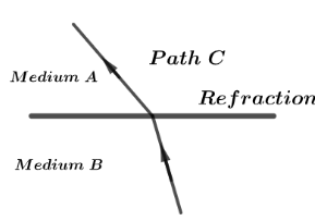 Let us understand by taking a simple example: Consider ray of light falls from medium A on a refraction interface to medium B and its trace of path is shown in figure through path $C$ as: