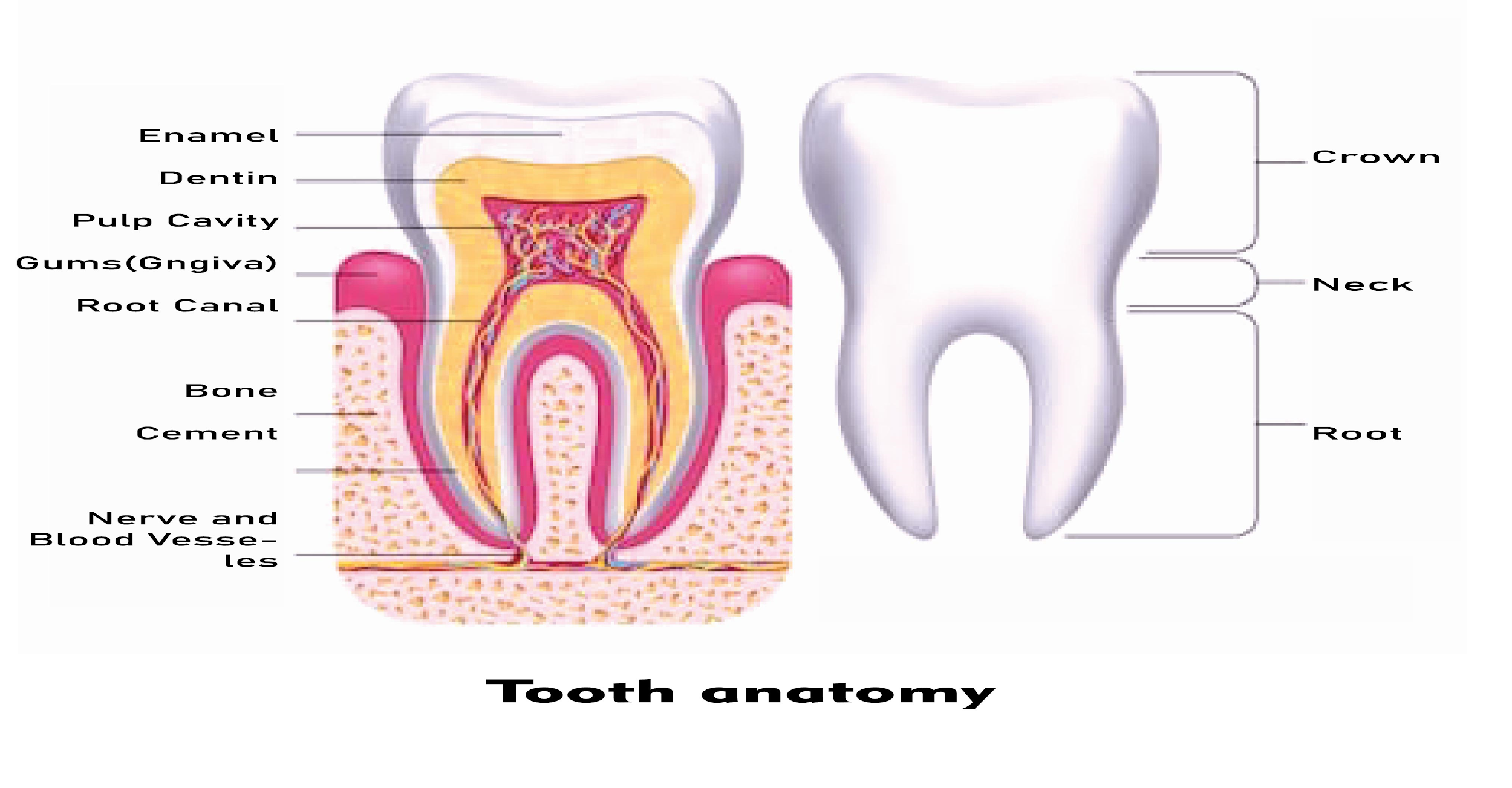 Note: The decay enters the dentine where it is able to spread and weaken the enamel. If decay is left untreated, it can enter the pulp of the tooth, which includes blood vessels and nerves. Pulp gets infected. In the soft tissues, an abscess (swelling) or a fistula (opening to the gum surface) may develop.