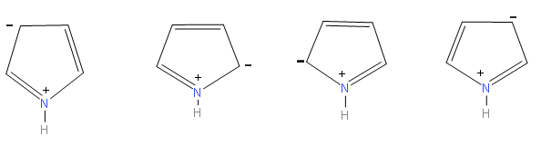 We can make four resonance structures of pyrrole.