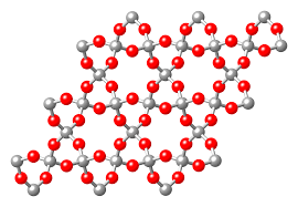 - Here you can clearly see that each silicon atom is sharing its electrons with 4 oxygen atoms and each oxygen atom is shared between two tetrahedral and it is having network like structure.