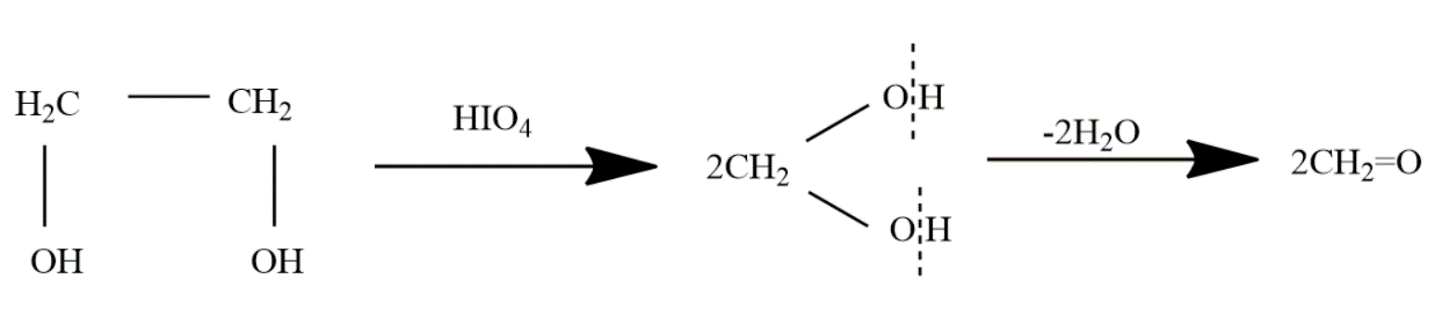 Here, ethylene glycol gets oxidized by periodic acid. The steps are as follows: