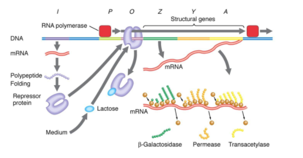 However, when extracellular glucose levels are low, the cell membrane may be more permeable to lactose, which causes the transcription of lacY and lacZ genes to be expressed in proteins and enzymes that promote the metabolism of lactose.