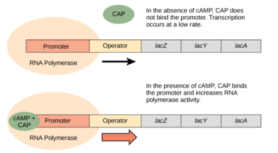 In addition, when the cAMP-CAP complex is formed within the cell as a result of intercellular lactose, it promotes the transcription of the genes mentioned above.