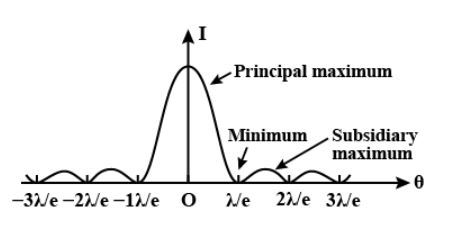 Intensity of these secondary maxima is much less than central maxima and falls off as rapidly as it moves outwards. The central maxima lies between the minima and the width of the central maximum is the distance between the first order minima from the centre of the screen on both the sides of the centre.