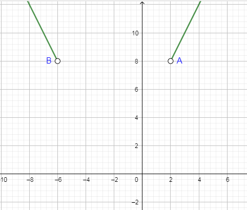 The open holes of points A and B are suggesting that at x equals -6 and 2 the y is not taking a value. Hence, we have drawn the graph of $\left| 2x+4 \right|>8$.