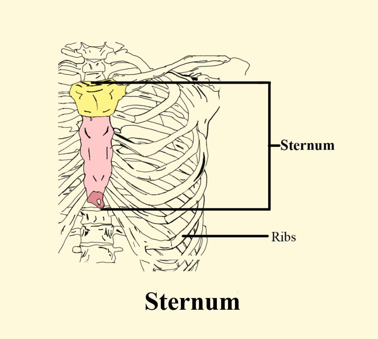 The two sides of the rib cage together are connected by the sternum or the breastbone. In front of several important organs located in the chest and the gut, it presents which includes the heart, lungs, and stomach.