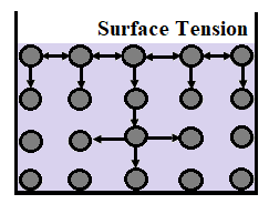 Hint: Surface tension is a property of the liquid surface acting as if it were a stretched elastic membrane. Surface tension in a liquid owes to the fact that the molecules attract one another, as each molecule forms a bond with the ones present in its vicinity. This inward net force causes the liquid molecules on the surface to contract and to resist being stretched or broken.