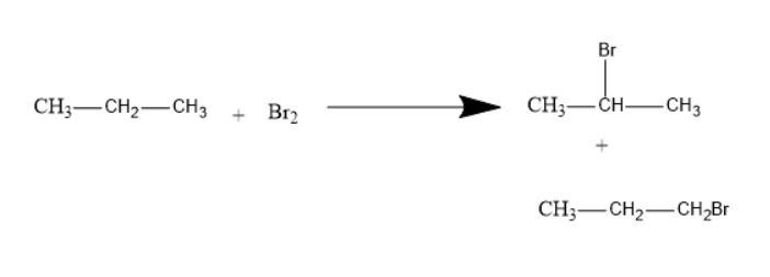 Hint: Alkanes are unsaturated hydrocarbons. Due to the absence of much electronegativity difference between the atoms in alkanes. These compounds undergo only substitution reactions like reactions with bromine. Propane is an alkane react with bromine to form two monobromo derivatives.