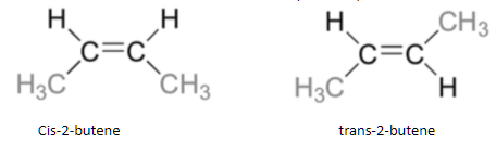 2-Butene can exist as cis and trans isomers because of the double bond that leads to the restricted rotation. This results in two isomers where the cis-isomer formed has the two methyl groups on the same side and the trans-isomer formed has the two methyl groups on opposite sides.