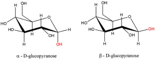 - The ring can close in two different ways: with the new OH group down or up in the conventional Haworth projection. This carbon atom which can assume either configuration is referred to as anomeric carbon and the two different cyclised forms as anomers of each other called $\alpha $- D – glucopyranose and $\beta $- D – glucopyranose. When the hydroxyl group on the C-1 atom is pointing downwards, it is called the $\alpha $- anomer and when it is pointing upwards, it is called the $\beta $- anomer. The structures are: