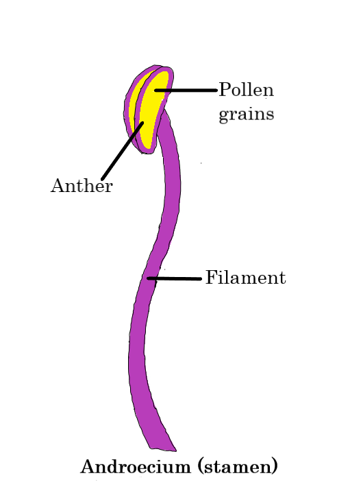 -The stamen are male reproductive organs of a flower. It has two parts: anther and stalk or filament.
