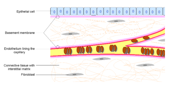 Hint: The basement membrane is a thin membrane supporting the cells of an epithelium and separating them from the underlying tissue. It consists of mucopolysaccharide and very fine fibrous proteins.