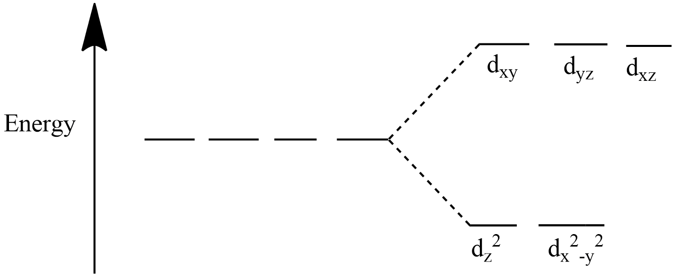 -When the ligands approach the central metal ion, the degeneracy of electronic orbitals (usually d or f orbitals) are broken due to the static electric field produced by the surrounding charge distribution.