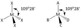 The bond angle indicates that the \[\angle AMD\] angle is \[109^\circ 28'\] which is the same as that for \[\angle XMX\] angle. Thus the bond angles in \[M{X_4}\] are written as
